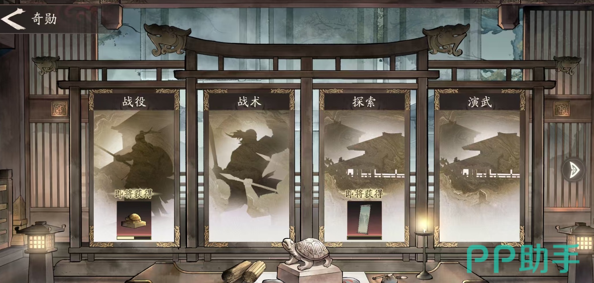 第三个建筑是奇勋阁,用于查看当前已完成的成就进度并领取相应奖励。游戏内设置了多种类型的成就任务,覆盖战役推进、战术执行、地图探索以及演武挑战等玩法模块。大多数成就与日常活动紧密关联,只要持续参与即可逐步解锁。每完成一定数量的成就,还能提升个人爵位等级,进一步彰显玩家的成长轨迹。