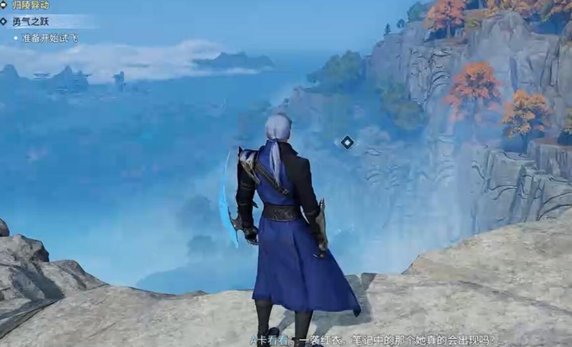 道具收集完毕后,使用钩锁装置返回上层出口,离场瞬间即触发任务蓝标更新。下一阶段目标为绝云桥——建议原路传送回赤隼馆副本起点,再向东南方向滑翔前往。抵达后剧情自动播放,随即进入试飞挑战环节。顺利完成飞行校准与路径穿越后,整段“勇气之跃”任务正式完结。
