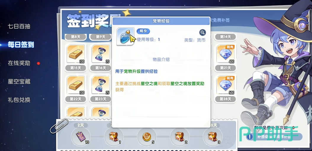 4、参与周期性运营活动——开服阶段活动密度最高,后续亦保持高频更新。典型如连续签到类活动,达成指定天数即可领取含宠物经验在内的多档奖励,具备强确定性与低操作门槛,是稳定补足经验缺口的重要辅助来源。