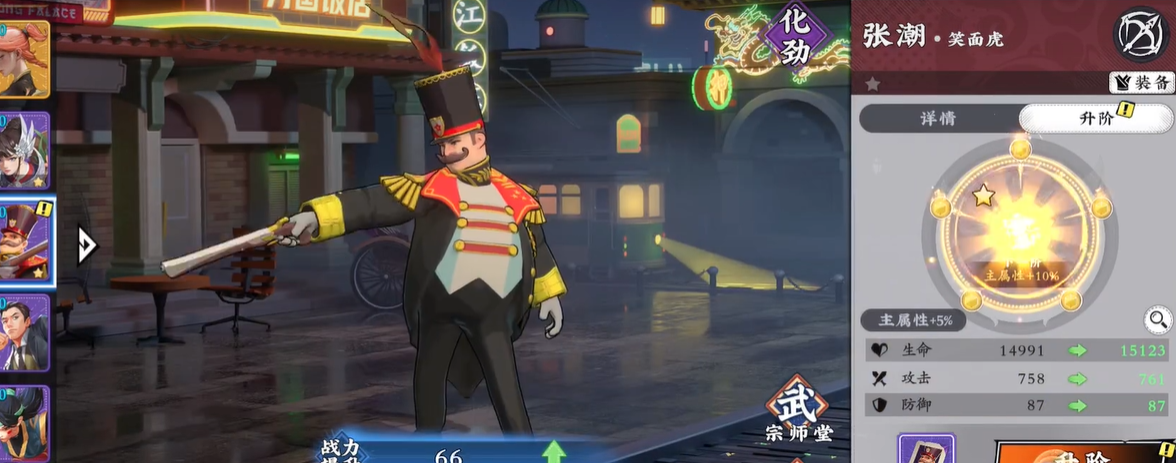 站位部署上,推荐将隐龙与虞丹伶置于前排双坦位:二者基础防御属性扎实,配合隐龙的嘲讽与虞丹伶的减伤机制,可有效吸收并延缓敌方首轮火力。张潮、李玲珑、桃姬则统一布防于后排——三者虽输出能力突出,但身板偏脆,需依赖前排牵制与桃姬的持续保护,方能安全完成多段技能循环。此布阵尤其适用于对抗高爆发、强压制类敌方阵容,依靠续航压制逐步瓦解对方资源节奏。