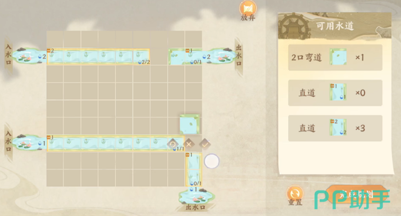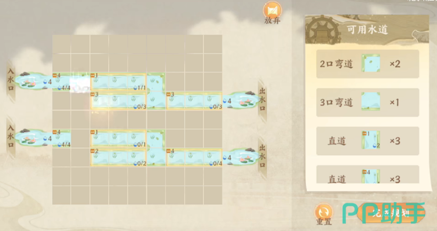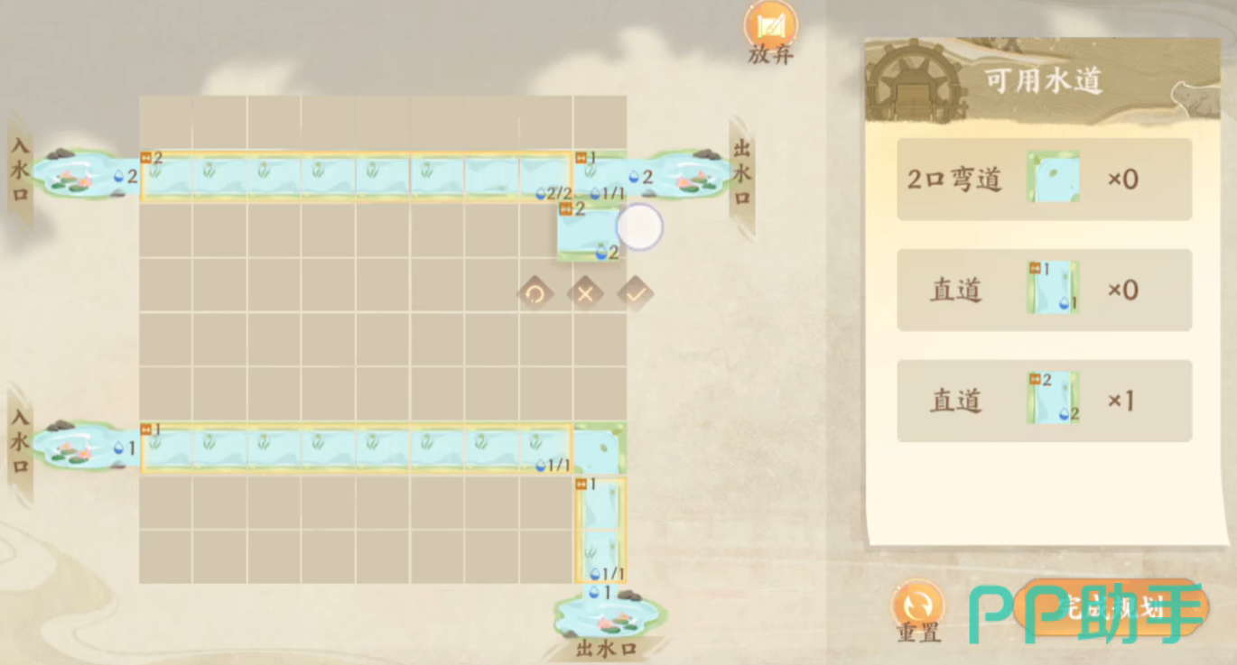不过,这并不是全部。有些关卡还会加入特殊地块,像是森林和池塘。森林是一种障碍,无法放置水道,但池塘却是一个可以为你提供独特帮助的地方。池塘的作用是水流可以进入池塘,但池塘中的水流也会有输出,影响着周围水道的水流分配。合理利用池塘,可以让你在复杂的关卡中找到突破口,达到意想不到的效果。