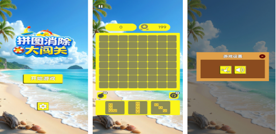 基于方块元素为主的拼图游戏,游戏中涵盖的拼图素材有很多,其实从简单的玩法上来看,和俄罗斯方块特别相似,在下方会出现不同形状的方块,而玩家只要通过合理规划的方式,将下方的方块拖放在上方的空白格中,所有的方块将整行填满之后,就可以此消除获得相应的分数。