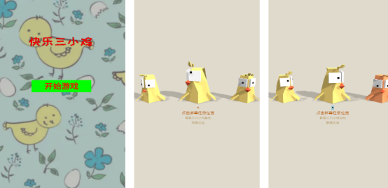 简单易上手的操作方式,无需连接网络即可轻松体验,适合男女老少体验,这款游戏其实没有任何的要求,玩家可以尽情发挥出自己的魅力,通过点击屏幕左边或点击屏幕右边,让这其中的三只小鸡跟随着您的手指,摇头晃脑并摆展现出优美的舞姿。