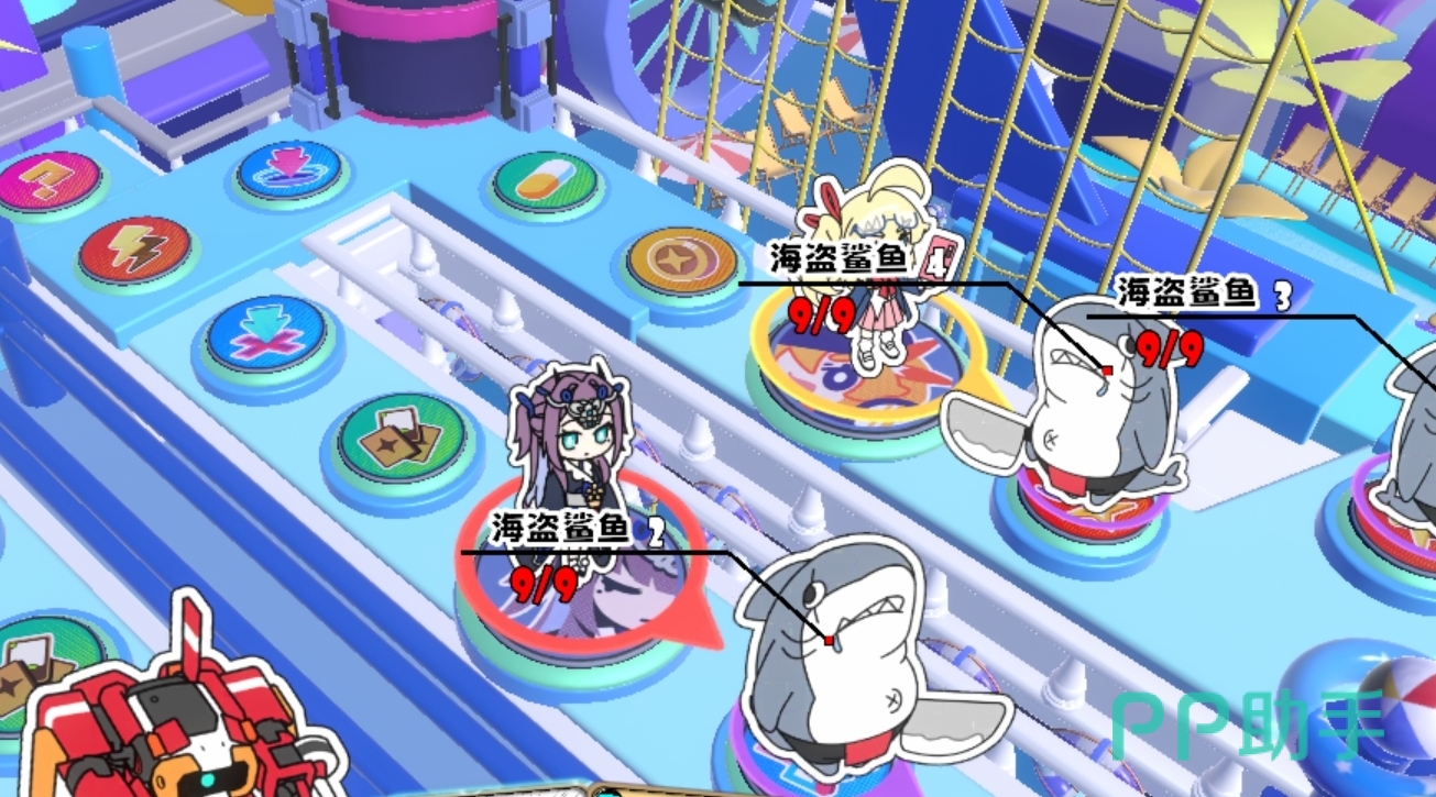 海盗王嘎呜于第3回合登场,初始处于睡眠状态,不主动移动,但具备反击能力。此时无需急于挑战,应集中清理剩余海盗鲨鱼并推进星级升级——尽早升至三星是提升生存与输出的关键。第5回合起,2名海盗精锐正式入场,其携带独特机制:每间隔3回合,会在自身后方生成1只海盗鲨鱼。因此务必在首次刷新后尽快处理,若未能及时歼灭,需注意走位规避其正面区域,防止被精锐与新召唤鲨鱼连续夹击。
