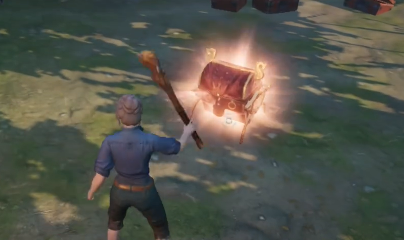 接下来,你需要和宝箱互动。一旦互动完成,宝箱就会变得暴躁起来,开始攻击你。这时,别迅速跑到临时家园附近,打开背包,拿出任何物品向它扔过去。关键是要命中它。如果你成功扔到宝箱,它会突然变成一个金色宝箱,里面的奖励也随之解锁。可是如果没丢中,它依然会继续发动攻击,这样的攻击可是能直接秒杀你。