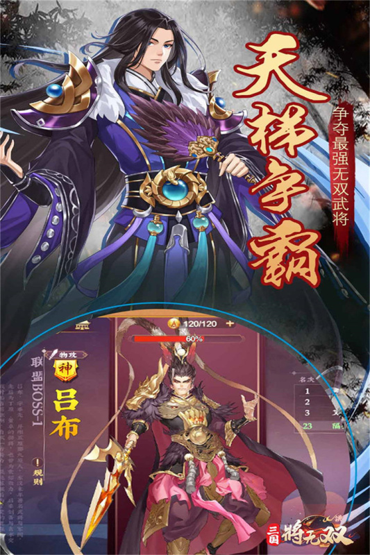 作为比较精彩的角色扮演系列的游戏,整个游戏的画面非常的精致,各式各样的颜色填充也非常的饱满,这款游戏能够让大家感受到三国的热情和激烈,在游戏中如果是想要获胜的话就必须要有较强的策略性。玩家需要不断的提升这些武将的实力,并且可以去探索出不同的副本任务,完成任务后可以获得相应的奖励。