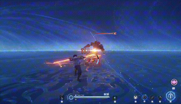 元流之子的基础输出方式为四段式连续斩击,每一段普攻均具备独立判定与稳定伤害,形成高频低延迟的压制节奏。当任意主动技能命中目标后,下一次普攻将自动触发“激流强化”,造成显著提升的物理伤害——该机制是其爆发窗口的关键触发条件,也是连招循环中的核心衔接点。一瞬激流作为位移技能,可瞬间激活流脉路径,实现短距离突进或战术撤退,冷却时间合理,使用容错率高。