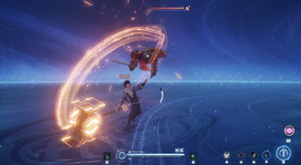 流转轮为多段复合型技能:首段释放时向前重劈,造成范围物理伤害;再次施放则向后闪避并发动回旋反击,对路径上敌人造成二次伤害,同时回复自身生命值。该技能集输出、生存与机动于一体,在消耗战与反打场景中表现突出,尤其适合新手建立攻防平衡意识。