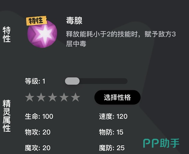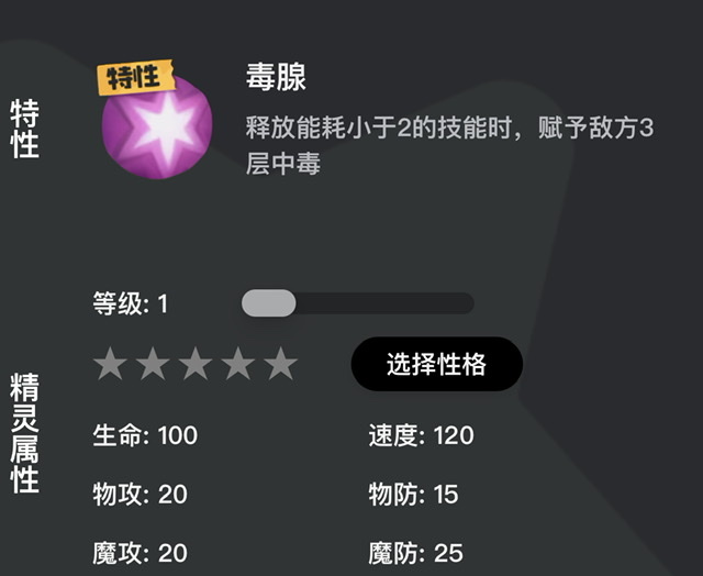 芋香巨角蛛的种族值总和为594,其中生命值高达135,为它奠定了强大的生存基础。物理和魔法防御分别为109和106,使它在面对多种攻击类型时都能保持稳定。虽然物攻和魔攻均为72,但它的核心输出并非依赖直接伤害,而是通过技能对敌人造成持续的生命百分比削减。速度值100则确保它能迅速行动,为队伍争取主动权。这样的属性分配让芋香巨角蛛成为一只兼具防御与消耗能力的宠物,特别适合在持久战中发挥作用。