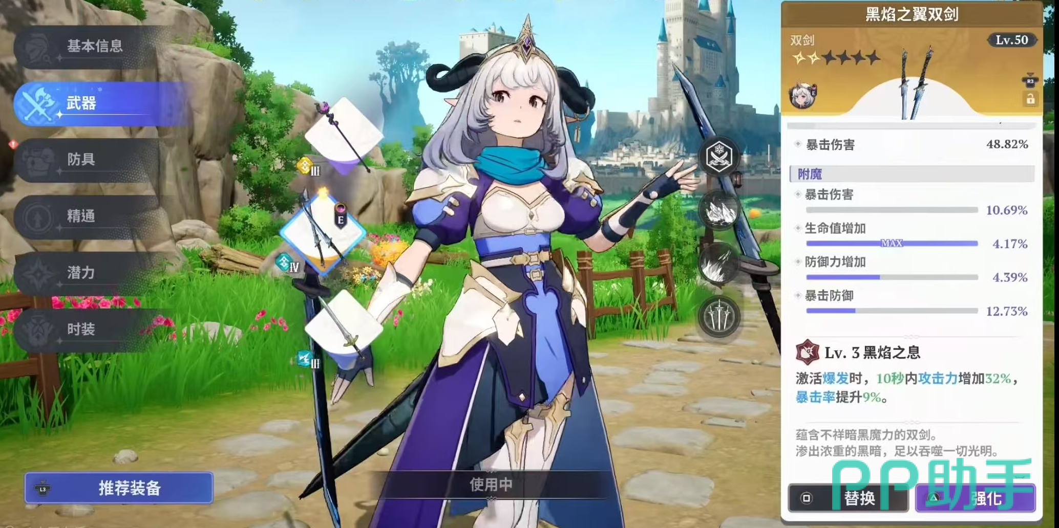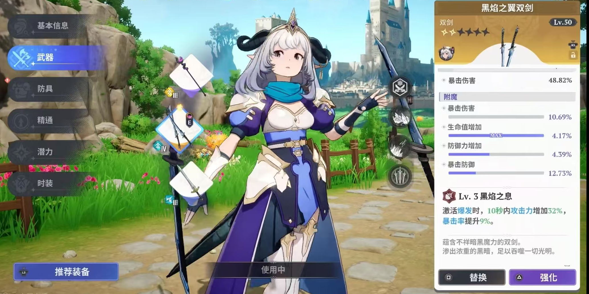 杰莉卡可装配三类武器:双剑、细剑与长枪,三者均归属冰属性体系。其中双剑为当前版本最优解,核心围绕“冰冻战刃”机制展开——命中目标后同步削减敌方爆击抗伤,并触发瞬移绕后效果,大幅提升连招流畅度与爆发伤害密度,是竞速推图与高难BOSS战的首选配置。