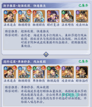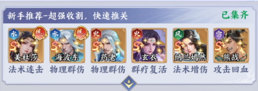 新手期阵容重在稳定过渡与资源积累。本套以“法术连击+群体压制+生存兜底”为构建思路:美杜莎作为水系法术核心,凭借被动触发的多段攻击,在前期即可高效清剿杂兵;海波东承担冰系AOE主力,大招覆盖范围广、伤害衰减低,可快速压低敌方整体血量;药老为火系辅助型角色,提供持续输出的同时,赋予队友怒气回复与属性增益,显著提升队伍续航能力;纳兰嫣然提供稳定的群体增伤效果,强化全队爆发节奏;熊战与玄衣则分别承担前排承伤与后排护盾职能,确保容错率。整套阵容无明显短板,推图效率高,资源获取快,是零氪及微氪玩家起步阶段的理想选择。