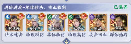 中期阵容需应对副本机制深化与竞技场强度升级,因此更强调目标优先级控制与残血收割能力。本套保留美杜莎与海波东的AOE清场基础,新增云山、云韵构成双风系单体爆发体系——云山技能具备高倍率单点爆发与打断效果,云韵则通过风系物理伤害叠加连击与暴击率,二者配合可实现对敌方核心单位的瞬杀;苏千提供治疗与减控效果,熊战持续提供护甲加成与嘲讽保护,共同构建中后期副本所需的生存下限。该配置在保证推图稳定性的同时,大幅提升PVP对抗中的战术灵活性与关键回合掌控力。