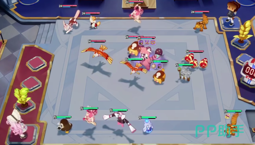 此外,可根据敌方站位灵活调整憨堡的部署位置。例如,当敌方主力集中于中间偏右区域时,建议将憨堡放置在战场左下角,以便最大化其射程优势与打击效率。