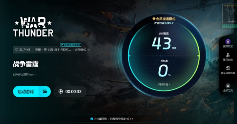 好了,以上便是战争雷霆国际服加速器的全部内容了,该游戏实际体验起来的效果上还是很不错的,并且其中为用户带来了多样化的体验元素,在实际的游戏效果方面还是很给力的,近期有打算的话,就抓紧去点击链接来安装吧。