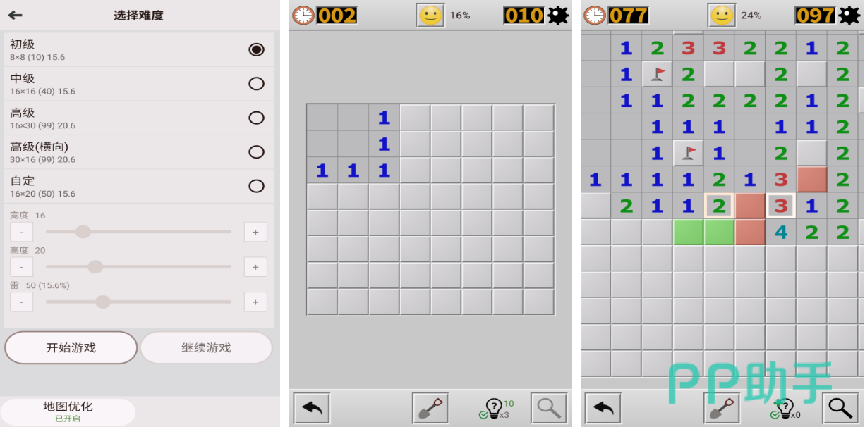 这款扫雷主题的休闲游戏玩法规则都非常经典,没有时间限定只需慢慢寻找地雷位置就行,可自定义初级到高级的许多关卡模式,每关地雷摆放的位置都是随机的刺激性也不错,数字的提示十分良心能轻松寻找地雷,画面塑造普通怀旧给人玩初代扫雷的感觉,自认为是扫雷高手的玩家可试试这款经典版作品。