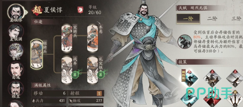 夏侯渊2阶提升15%暴击率,直接增强爆发能力,3阶暴击回战意效果应用场景有限,建议止步于2阶。曹仁2阶需满足八门金锁阵且兵力满值才能获得16%伤害加成,条件严苛,实用性受限;3阶在残血时提供40%攻心效果,单挑有一定价值,但整体升阶优先级一般。张郃3阶具备对所有武将的克制增伤,若搭配副将藏霸,叠加后增伤可超20%,实战表现突出。荀彧2阶强化普攻与战法,与其辅助定位冲突,3阶可大幅缩短技能冷却,适合后期资源充裕时再升级。贾诩2阶仅提升8%伤害,3阶需敌方携带多个增益状态才生效,机制依赖性强,不推荐优先培养。