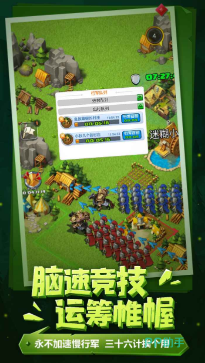 本作主打策略性自动战斗机制,操作简便却不失深度。战斗过程中无需手动操控单位,胜负关键在于战前的战术安排。玩家可根据敌方阵容实时调整兵种搭配与兵力配置,系统会自动执行进攻流程。只要整体战力占优且策略得当,便能顺利取胜。此外,游戏中还设有多种拥有独特技能的首领角色,合理利用其特殊能力可在对战中取得决定性优势。