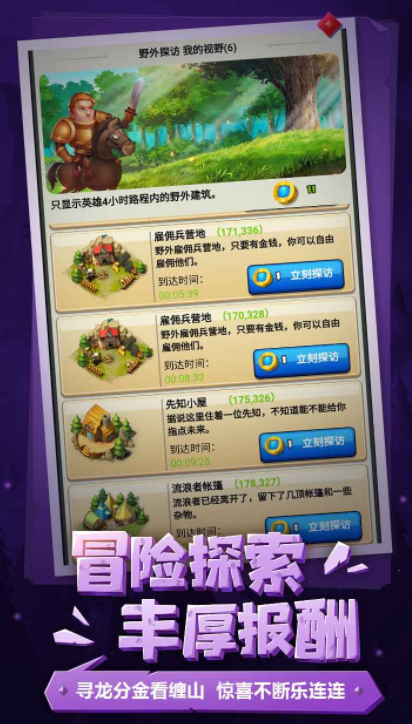 对于偏好探索而非对抗的玩家,游戏也提供了丰富的冒险内容。通过派遣部队外出探险,不仅能收获大量稀有资源,还有机会直接占领新区域,从而扩大控制范围。整体玩法轻松易上手,没有繁重的任务系统,玩家可以按照自己的节奏发展领地,在这片原始而神秘的大陆上书写属于自己的传奇篇章。