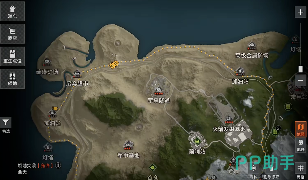 物资车中包含大量高价值物品,有玩家曾从中获得火箭筒和C4等强力装备,因此极具探索价值。该车辆会在游戏开启后的第三天准时出现,并沿地图中标注的黄色路线行进。目前存在两种类型的车辆:一种是无守护者的物资车,不会主动发起攻击,可安全搜刮;另一种为巡逻车,周围伴有蓝色小人标识的守卫单位,顶部配备炮台,需远程逐个清除守卫。特别注意:若未完全消灭守卫,对车辆造成任何伤害都会导致其立即停止移动,便于拦截。
