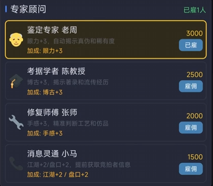 角色设定为民间收藏爱好者,非专业鉴定师,因此交易逻辑侧重商业收益而非学术考据。当竞拍价格明显超出物品合理估值区间时,建议果断放弃;游戏中设有专家咨询功能,可在关键节点获取辅助参考意见,增强策略可靠性。