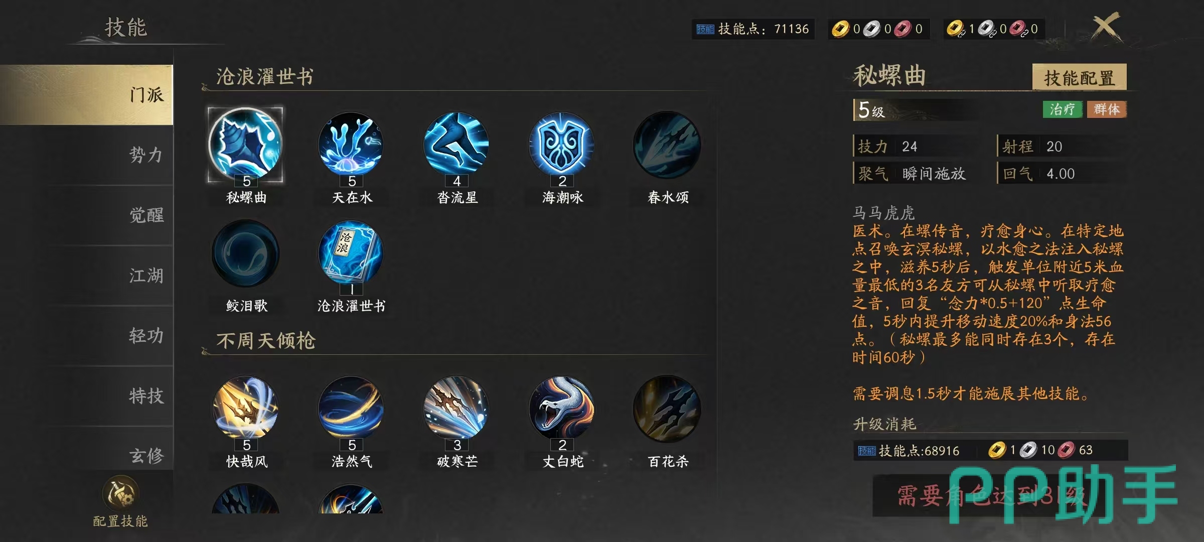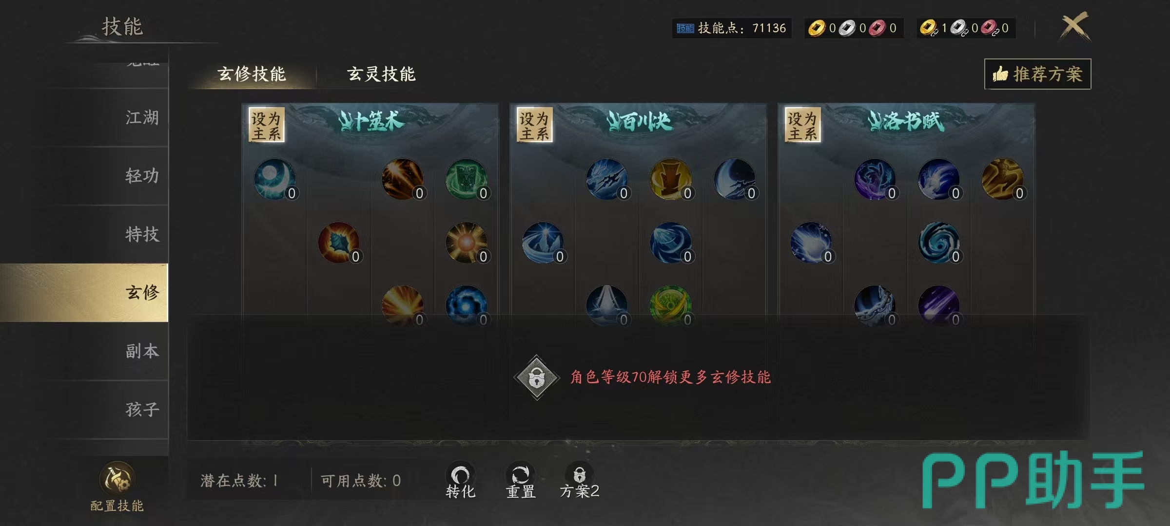 玄修系统以门派技能为根基,为每个门派提供两条独立演化的精修分支。玩家需在30级时首次激活该系统,此时可获得最高33点潜在选修点数。进入选修界面后,点击“转换”按钮,消耗金币与技能点,即可将潜在点数转化为可自由分配的玄修点数。这一设计打破了传统单一培养模式,使同门派角色也能发展出截然不同的输出逻辑、控制倾向或生存能力。