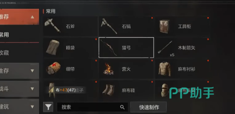 另一个提升生存效率的重要道具是睡袋,可在商店用纤维兑换获得。尽早配置睡袋极为必要,否则受伤后只能硬撑,一旦死亡就得重新开始,耗费大量时间重新发育。拥有睡袋后,无论是战斗致残还是意外身亡,都能实现原地复活,无需重新跑图寻家,极大节省了重建成本。开局阶段还应准备基础工具,如猎弓与石斧。石斧在砍伐树木时效率出众,显著加快资源积累速度。同时在居所内部设置工具柜,可阻止其他玩家擅自在家内建筑或破坏。