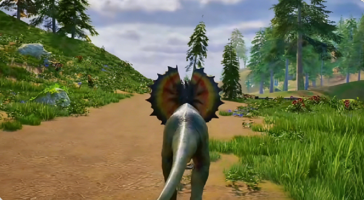双冠龙基于双嵴龙(Dilophosaurus)形态进行生态适配升级,具备全地形通行能力,并可为编队提供战术增益。其头顶冠饰直接关联毒液扩散半径,普攻附带护甲削弱效果;技能组支持近身撕咬与中距离毒液喷射的无缝衔接,兼具持续压制与区域控制双重价值。