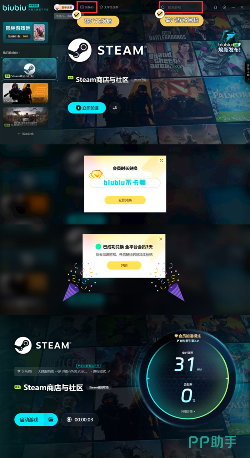 如果想玩这款游戏,可以通过steam商店进行下载,游戏本身是免费的,可以随意去购买下载。Biubiu加速器可以对steam商店进行优化,这样能帮助进行连接以及提升下载速度。使用biubiu的时候要注意,现在有免费试用福利,新注册的biubiu号可直接得三小时会员时间。还有一个兑换码【biubiu不卡顿】,这个兑换码能得72小时会员时间,而且是每个biubiu号都可以用一次的,所以一定要牢记。大家掌握了快捷键之后就可以更流畅的操作游戏,然后通过疯狂点击的方式来获得各种道具装扮自己的猫咪。