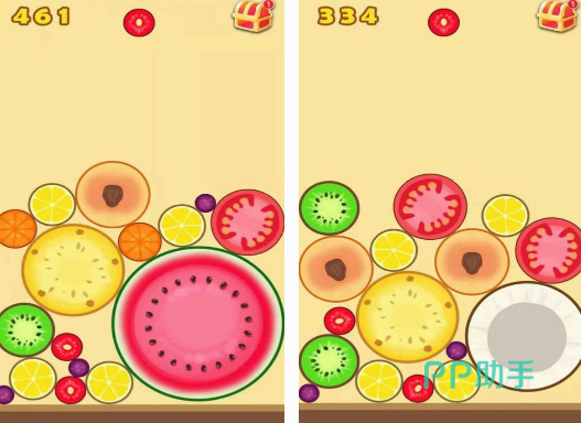 这款以简单的合成圩玩法的游戏,它是与2048有一些相似之处的,需要你在玩的时候,将体型小的水果,利用相撞的方式,就可合成样子,更大的水果。如果可达到与西瓜一样体型的以后,就可帮助你顺利的完成任务。由于里面的水果全部都是可以滚动的,以圆形的为主,所以在合成的过程中,会出现很多不一样的结果,所以相对于大家熟悉的2048还是有区别的。