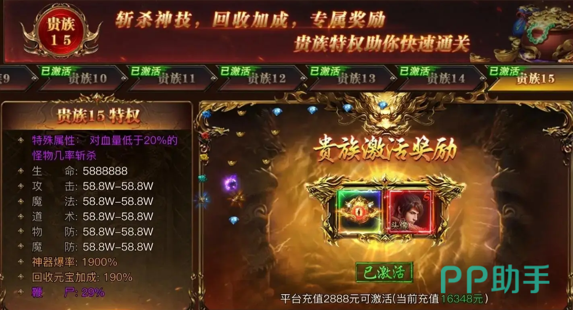 刷怪是获取圣装的主要途径,而圣装套装带来的战力加成远高于单件散装。参与“修真修炼室”玩法可稳定获得圣装制作材料,建议定期投入时间参与。由于挂机产出的转生相关材料有限,部分稀有资源仍需通过手动刷副本或挑战精英怪来补充。此外,投入58元解锁特定氪金档位后,可激活贵族VIP身份,额外获得自动续航与特权恢复等功能,整体增益效果明显,属于性价比较高的进阶选择。