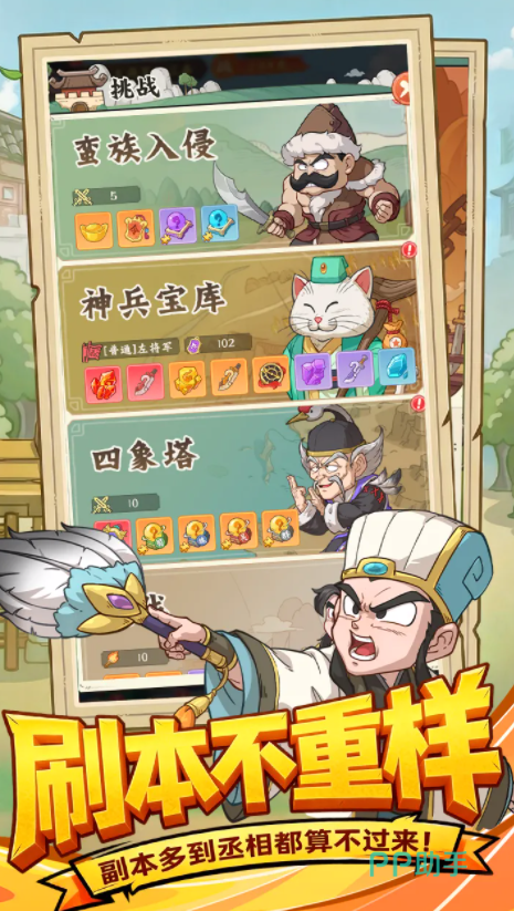 适合偏好三国文化但追求轻松体验的玩家群体。通过持续对战积累资源、优化配置,逐步打造专属高能探宝小队,在卡通化的赤壁、官渡、荆州等经典战场中展开别开生面的冒险征途。