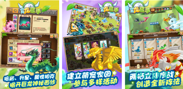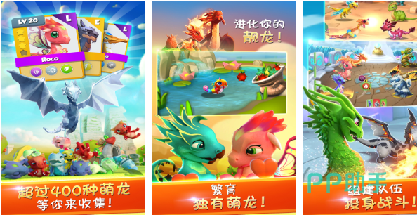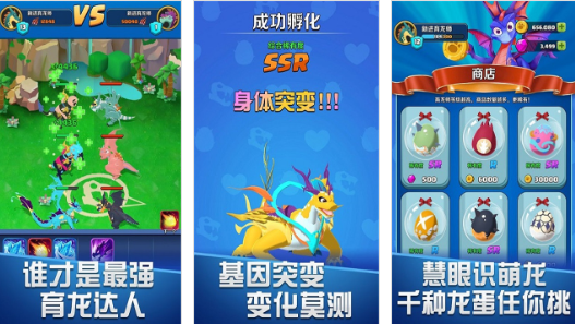 玩家在进入到商店之后就可以购买龙蛋,玩家可以选择去创建爱之屋,慢慢的去培养出新的龙蛋。游戏中会包括多种不一样的玩法,除了有种类比较丰富的龙外,同样还会有策略性的养成玩法。游戏会采用一个非常精美的画面,每一个角色或者是每一个画面都显得比较逼真。同时还会提供数千种不一样的,但可以让大家选择可以挑战无尽的可能。
