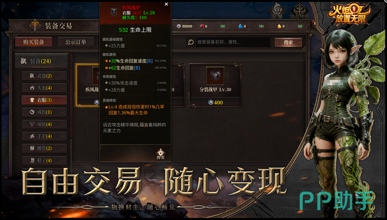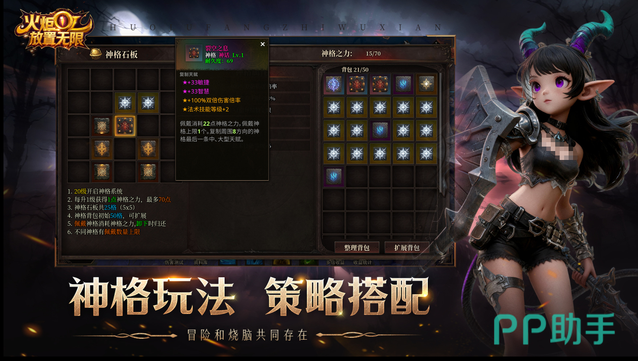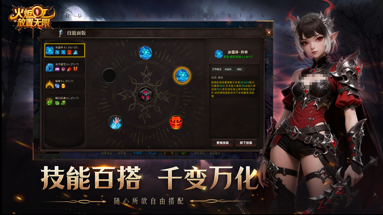 作为一款融合放置与刷图机制的RPG手游,《火炬:放置无限》强调策略性角色构建。玩家可自由选择战士、法师、游侠三大职业之一,通过挑战副本、扫荡野外地图积累经验与战利品。战斗中掉落的装备具备多维属性词条,支持自由重铸、洗练与套装搭配,由此衍生出数十种BD流派——例如高爆发速杀型、持续续航型、群体控场型等,同一职业亦可呈现截然不同的操作逻辑与战术定位。