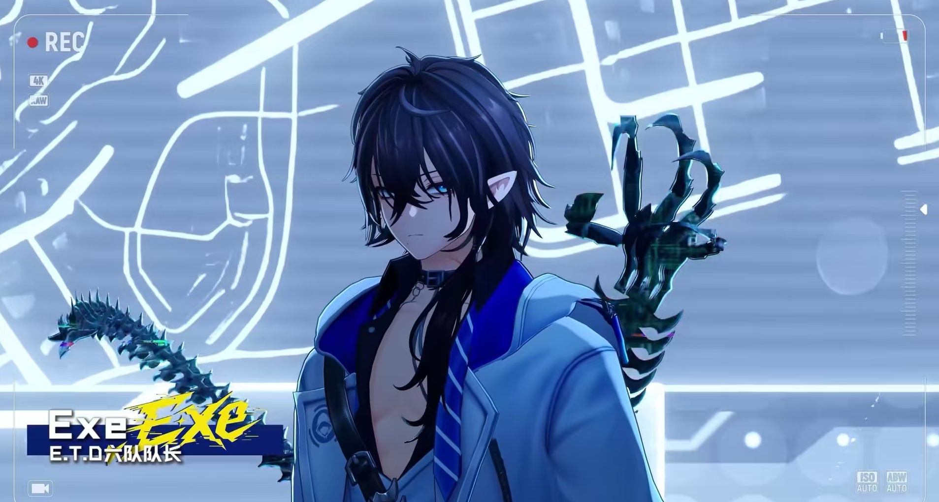 作为ETD六队现任队长,Exe在世界观设定中具备双重身份:既是精通虚拟空间渗透技术的顶尖黑客,亦是可驾驭古龙力量的特殊战力。其形象设计强调冷峻与精密感,服饰线条利落,整体视觉风格兼具科技感与神秘气质。剧情背景明确指出,他加入ETD的深层动因源于追查并制裁导致挚友死亡的异能罪犯,这一动机赋予角色鲜明的行为逻辑与情感张力。