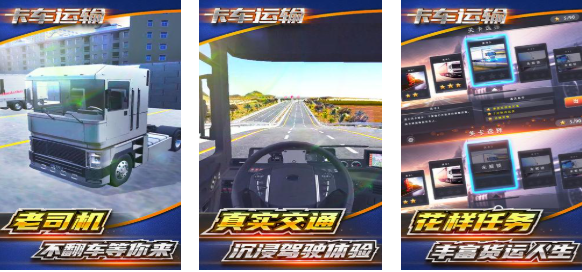 卡车运输这款超逼真的第一视角卡车模拟游戏很好玩,逼真的画面呈现出3D精美驾驶环境,一比一还原的各种卡车都有不同驾驶手感,操控卡车运行的过程流畅丝滑令人沉浸其中,花样繁多的任务结合主题各异的地图都是亮点,油门刹车等基础的虚拟驾驶按键足以灵活操作,针对特殊的环境还可以切换视角快速做任务。