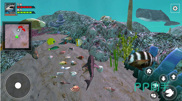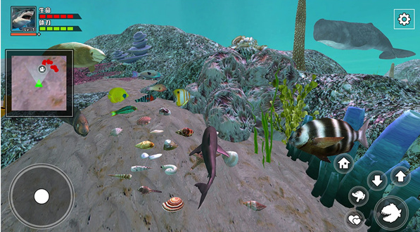 在游戏中,玩家将成为一只小鲨鱼,在经过不断的掠夺之后,后期就会变得更加的凶狠。里面有众多的任务,等待着大家去完成,一旦在完成之后就可以获取宝石,还有金币。到了后期还可以去购买一些特殊的救生道具,或者是用来去升级鲨鱼。游戏会选用一个3d画面就可以带来一个逼真的大世界。