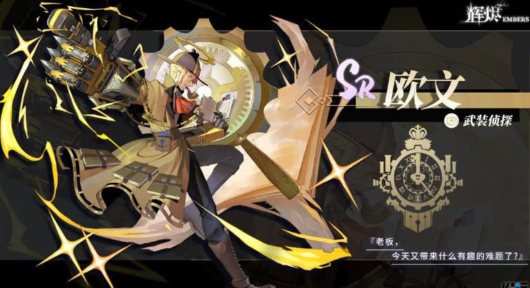 最后一位是侦探欧文,当前评级为SR级别。他拥有五次连击的能力,在攻击过程中可不断强化自身输出。部分技能带有空中打击效果,例如跃至高空后猛烈砸下,造成范围冲击。当怒气值积累到一定程度时,还能施加持续电击效果,虽消耗较多动能,但造成的最终伤害极为可观。动能消耗越多,实战输出越强。此外,他还可通过积攒耐力值来激活一定的防御机制,增强生存能力。