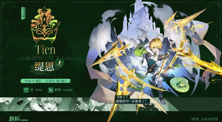 第三位推荐的角色是缇恩,因其独特形象被玩家们称为“青蛙王子”。他在战斗中能够施展三段式连击,并附带削韧效果。当成功削弱敌人防御时,可激活被动——消耗一枚音符触发精确释放机制。此状态下可根据操作方向进行短距离瞬移。若进入开刃状态,还可额外获得一枚音符。凭借频繁的闪现位移与重击配合,缇恩在实战中表现出极强的灵活性与控制能力。