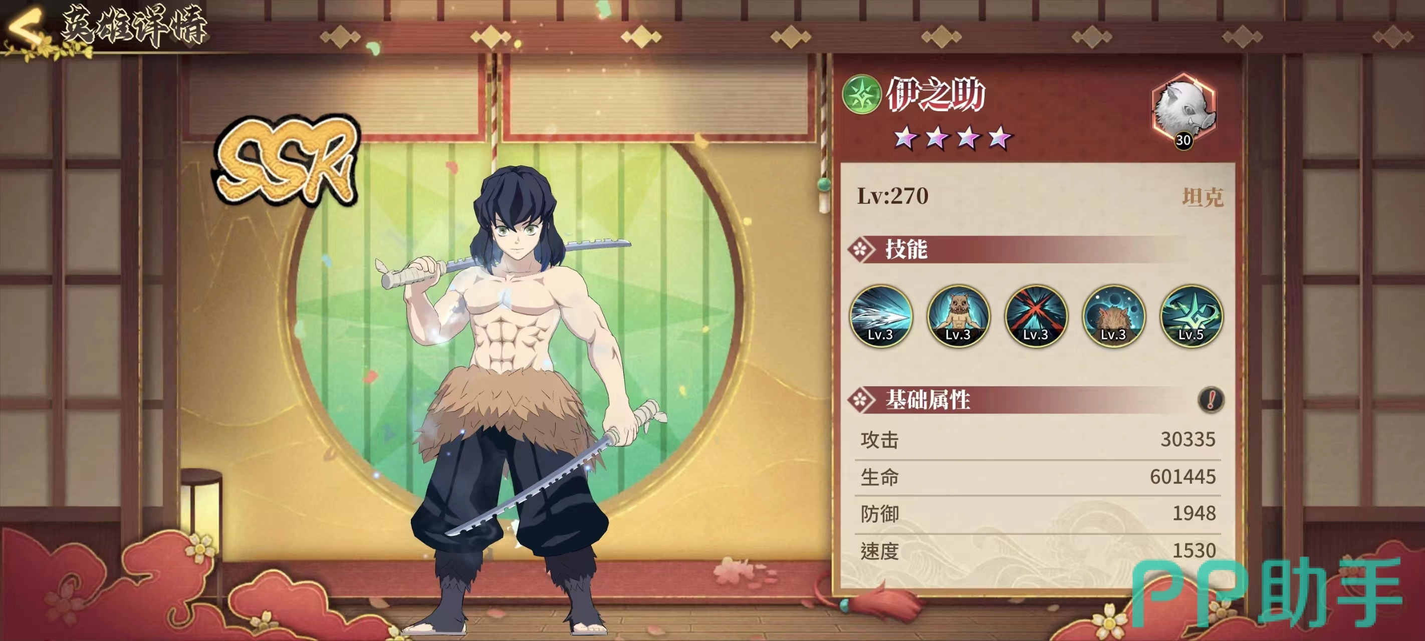 伊之助:这一角色也是一个前排角色,不过他相比于堕姬来说,会更加专注于承伤,技能伤害的倍率普普通通,不过能够给自己增加较厚的护盾,另外还有着增加血量,防御和免伤的被动,最后的“七之型空间感知”还赋予了他一个能够反弹15%伤害的被动,这个反伤效果非常克制敌人的输出位,因为他通常会站在前排的位置抗伤,容易成为敌方输出角色的第一进攻目标。