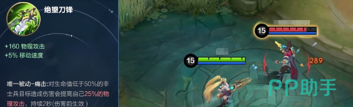 对于刺客角色,推荐使用绝望刀锋,能够提供超高的160点额外物攻,以及5%的移速加成,痛击效果可以对低于50%生命值的英雄单位造成额外25%的物攻伤害,对于刺客来说可以造成超高伤害,后期装备成型后甚至能够产生秒杀的效果。