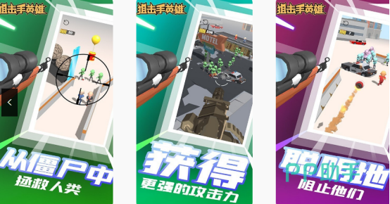 卡通的画面风格,也适合所有年龄段的人群,整体的操作方式都特别简单,只要随意点击屏幕就能完成射击的任务,在屏幕中将会看到各种各样的敌人,玩家要通过瞄准并快速射击的方式,将所有敌人全部消灭。其中涵盖了多样化的枪支类型,比如步枪以及狙击枪等等,在完成射击任务的同时,也能提升个人的射击技巧。