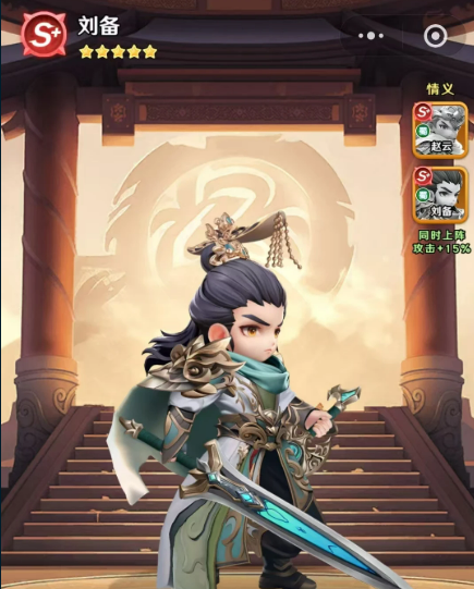龙胆将星(赵云+刘备)形成生存闭环。当赵云生命值低于40%时,自动触发不可驱散的2秒无敌状态,并附加一层无法被技能清除的护盾;与此同时,刘备的最大生命值获得提升,且每回合开始时恢复固定比例生命值。双人联动使队伍容错率显著增强,尤其适用于应对爆发型BOSS机制。