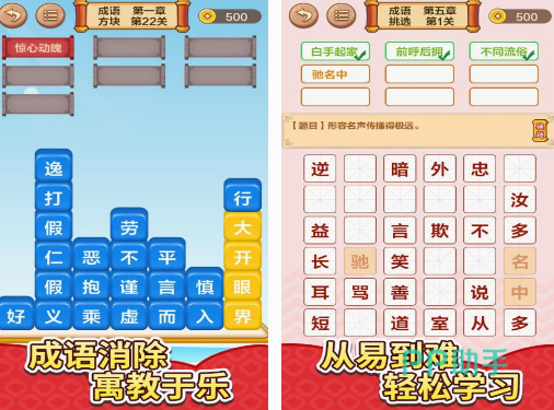 如果你想要玩成语接龙类型的游戏,这款收录了300多条,所以有很多的游戏玩家,会通过这款游戏来学习这方面的知识。玩法也是多种多样的,可通过由易到难的情况,帮助大家了解更多与成语有关的。还具有精美的画面,以及成语收藏的功能。如果你想要通关的话,需要根据里面所给出的文字正确的填写,将满足数量的成语填写完毕,就可以进入下一个关卡。