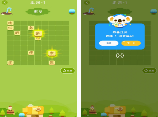 通过将汉字组成词语以后,大家就能完成消除,也是在组词游戏中风格与众不同,给大家带来快乐的。你在玩的时候,可看到收录了现实生活中很多的文字类型,只要点击能组成词语的文字,可回答正确的情况下,就能通关。涵盖超多的关卡内容,如果不知道文字怎么组词的话,还支持点击重置按钮,就可以重新开局。