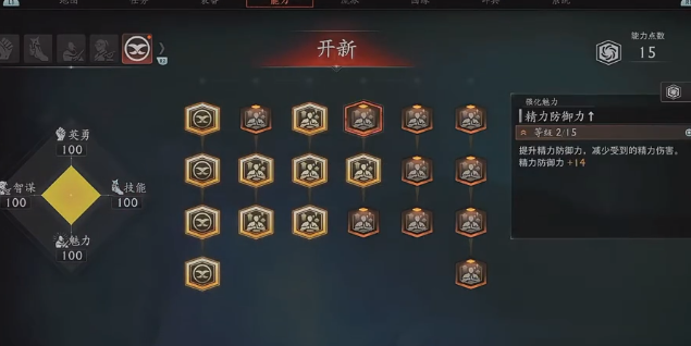 在人物能力的界面还有一个技能树,其他的属性点在经过兑换能力点之后就可以达到强化的效果。除了全面强化人物的属性之外,还可以去学习到无名开星流,适用于双刀、巨剑、牛尾刀和军刀。