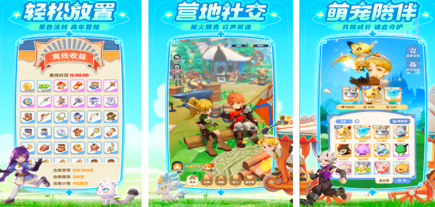 画面清新玩法简单的挂机类角色冒险手游,玩家可以通过不同的英雄营地来结识多位角色,组成冒险团对大陆各地展开探索。游戏中可以采用挂机冒险的玩法,操作轻松并且会触发多个趣味随机事件。利用丰富的社交模式来获得好友一起冒险。还可以获取装扮对英雄们进行装饰,收养宠物建造温馨的家园,休闲乐趣很丰富。