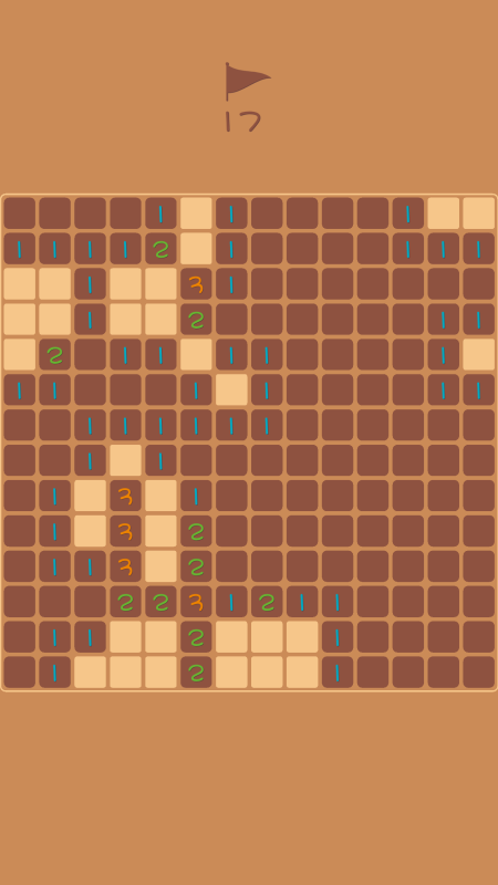 玩法简单却充满挑战:初始关卡只需在100个方格中找出10颗隐藏的地雷,随着难度提升,地雷数量会逐渐增加,考验你的观察力和逻辑思维。每个方格都需要谨慎点击,通过数字提示来推断地雷位置。游戏界面简洁明了,操作直观,既能锻炼大脑又不会带来太大压力。