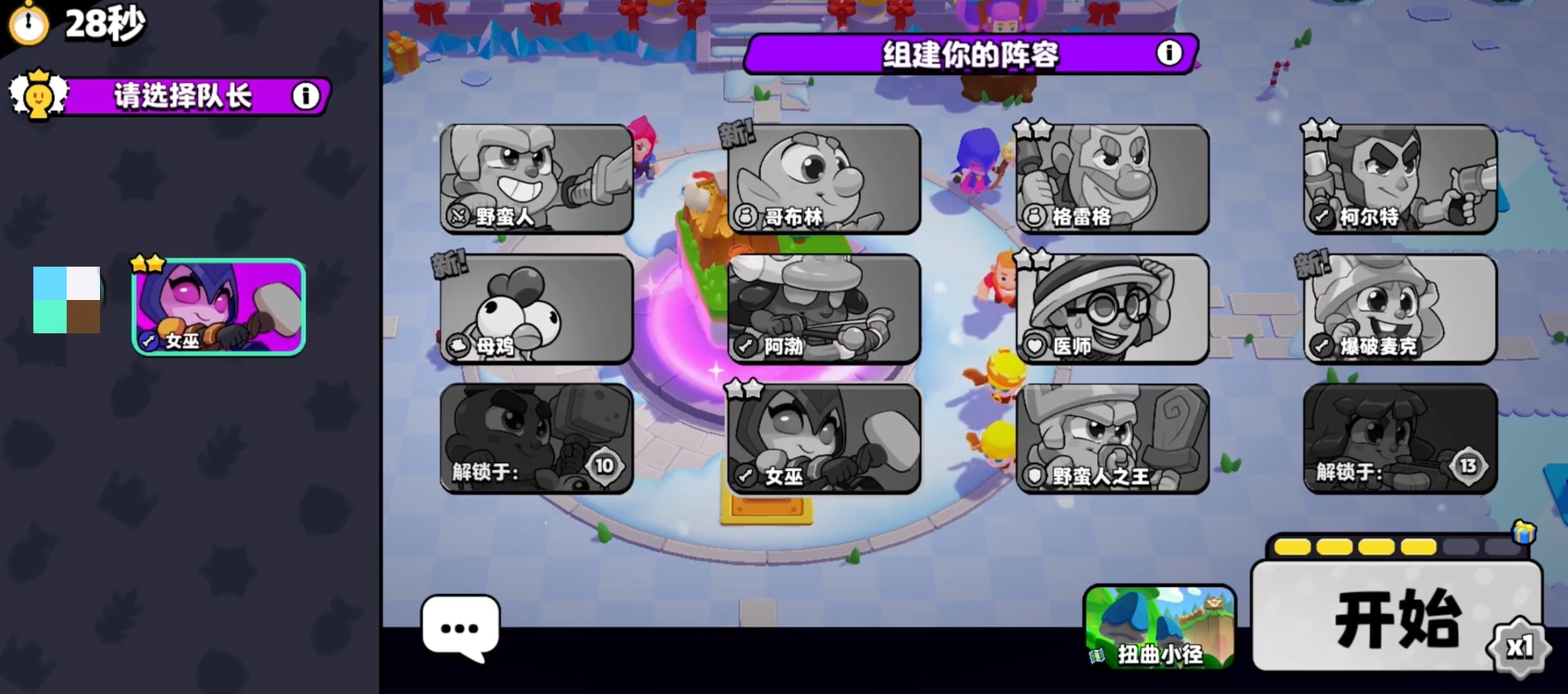 能召唤骷髅的女巫主要能依靠自身人多,从而玩出有意思的偷宝石流派,既在后期宝石出现时利用数量众多的小骷髅来卡主别人,让自己能吸到更多的宝石。阵容搭配时选女巫为队长,前期拿哥布林、格雷格发育,有母鸡上母鸡,然后再带上麦克、医师就能成型,其它角色看情况配。