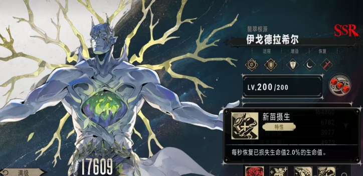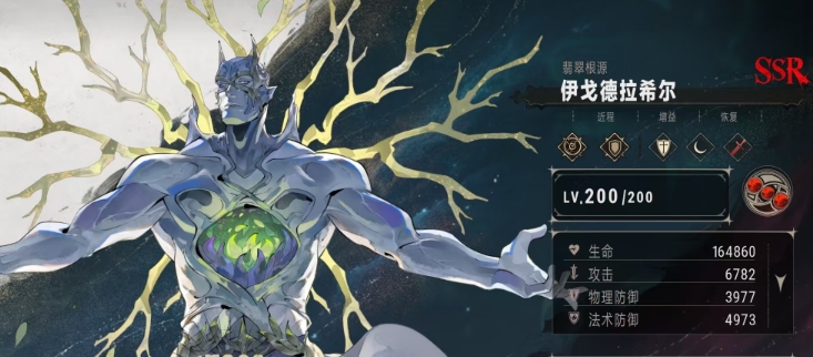 伊戈德拉希尔的外观设计令人过目难忘,它隶属于教会阵营,定位为重型角色,拥有着可靠的生存能力,其月相设定为新月,身为 SSR英雄,伊戈德拉希尔拥有升级的巨大空间,可以一路提升至 200级,这无疑意味着它在属性方面能够达到极高的水准,在普通攻击方面,伊戈德拉希尔展现出了强大的威力,其普通攻击名为抽芽,这一攻击技能能够对主目标造成高达 180%攻击力的物理伤害,相较于许多其他角色的普攻,这样的伤害比例无疑是高一些的。