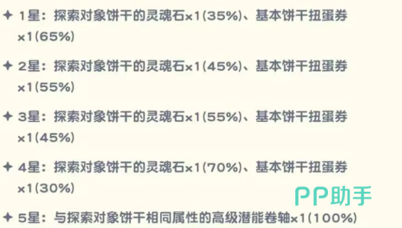 当前星座探险共设三类核心玩法:可可滴露的饼干探索、饼干派遣任务以及常规探险任务。其中,“可可滴露的饼干探索”以定向获取高星稀有饼干为核心目标。需特别注意:新上线的抄袭饼干暂不支持此模式选择。奖励构成严格绑定被探索饼干的星级——例如一星饼干参与探索时,产出对应饼干零食的概率为35%,基础饼干扭蛋券概率为65%;随着星级提高,零食掉落率上升,扭蛋券获取率相应下降。玩家应依据自身养成需求,动态调整派遣策略。